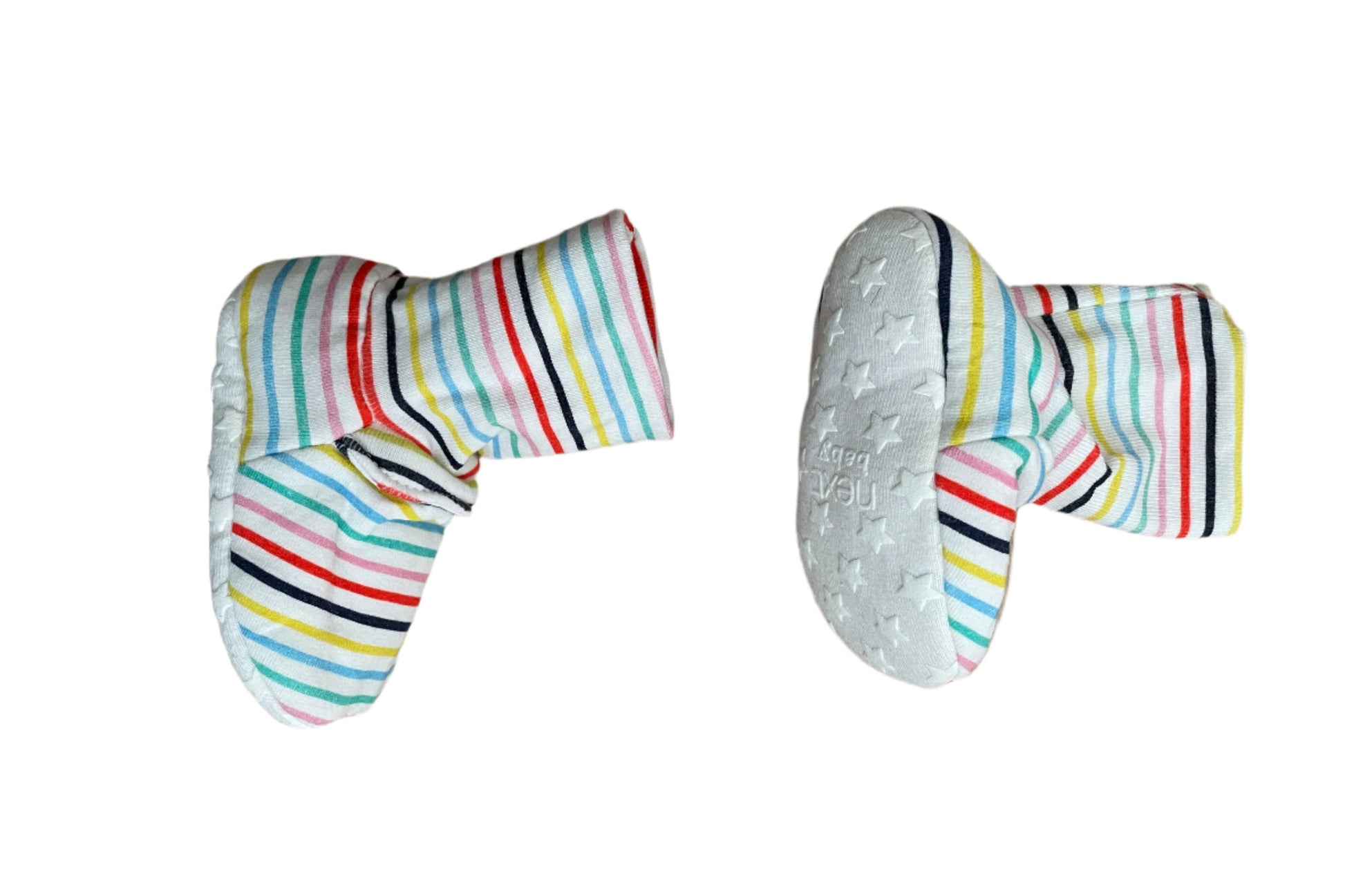 Vier paar zachte babylaarsjes met goede grip op de zool. Maat 3 - 6 maanden.