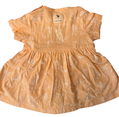 Lichtperzikkleurige babyjurk voor meisjes met onderkant en knoopjes, met eenvoudige luierwissel - maat 3-6 maanden van Keedo.