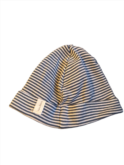 Een nautische newborn baby muts met een omslag, ribgebreid dus heel elastisch. Het voelt zijdezacht aan.