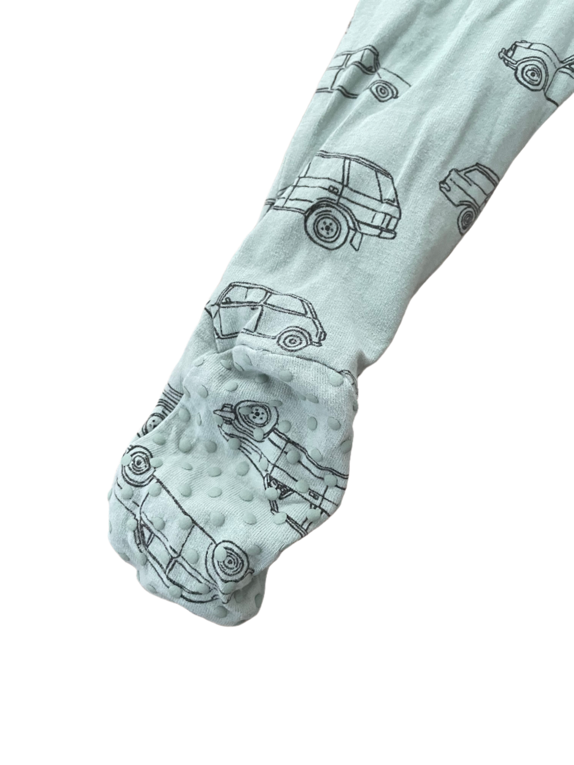 Groene Onesie met auto's erop. De onesie heeft een rits zodat je hem van bovenaf kunt openen om de outfit van je baby te verschonen, of van onderaf om de luier van je baby te verschonen terwijl je hem of haar warm en knus houdt: Zowel je baby als jij zullen dol zijn op hoe makkelijk het verschonen van luiers wordt! De onesie heeft ook extra grip op de voetzolen. Maat 74-80, 6-12M KATOEN OP