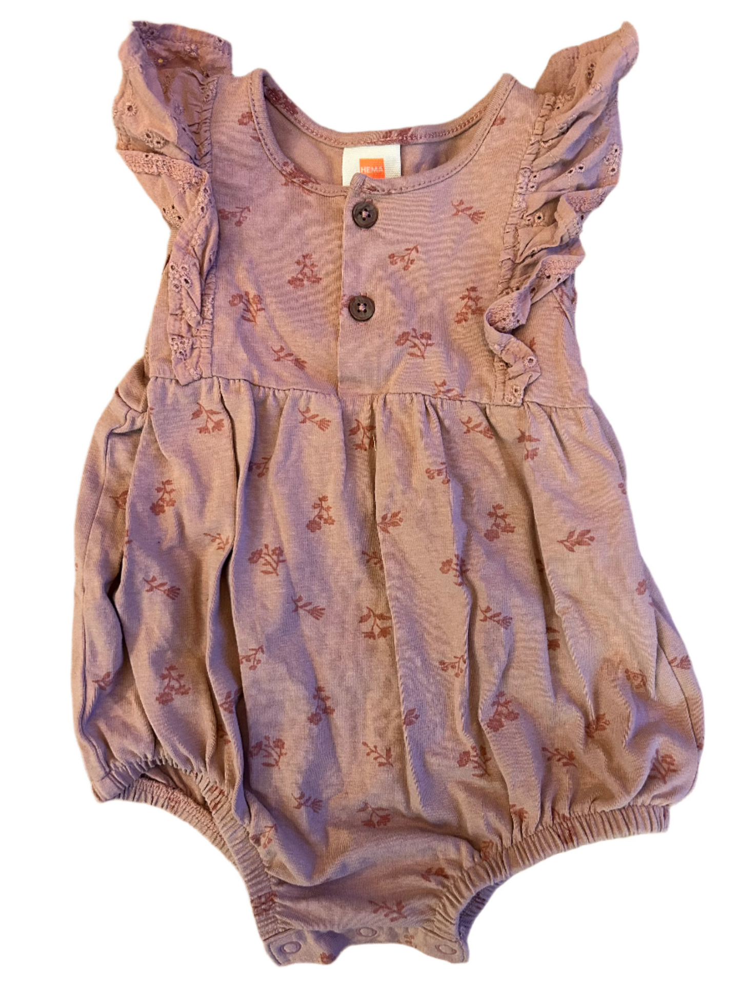 Lichtpaarse babyromper voor meisjes met bloemendetail en geplooide schouders - maat 74 (6-9M) van Hema.