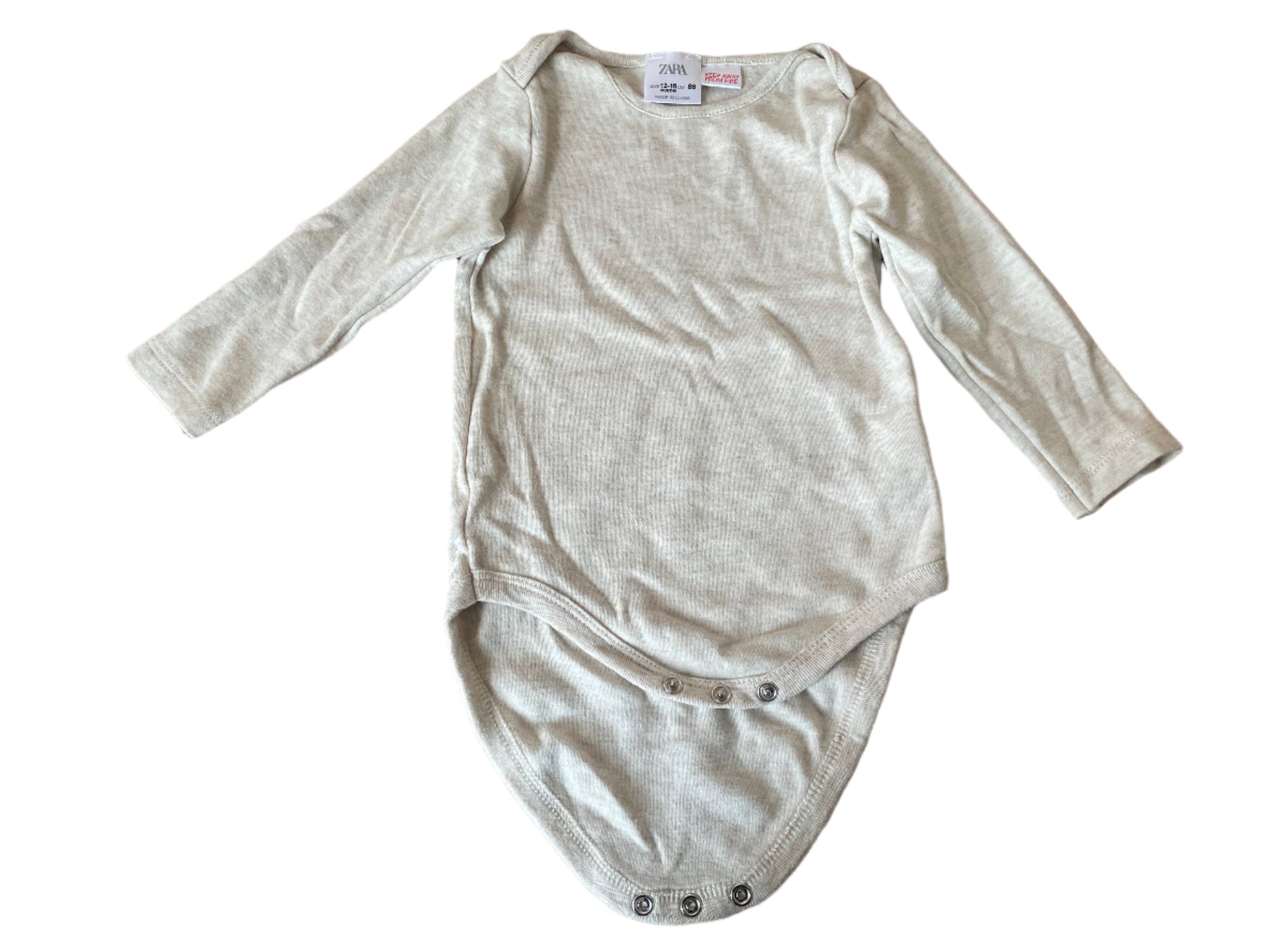 Romper met lange mouwen en envelophals. De romper is beige. Maat 86, 12 - 18 maanden, 100% katoen van Zara baby