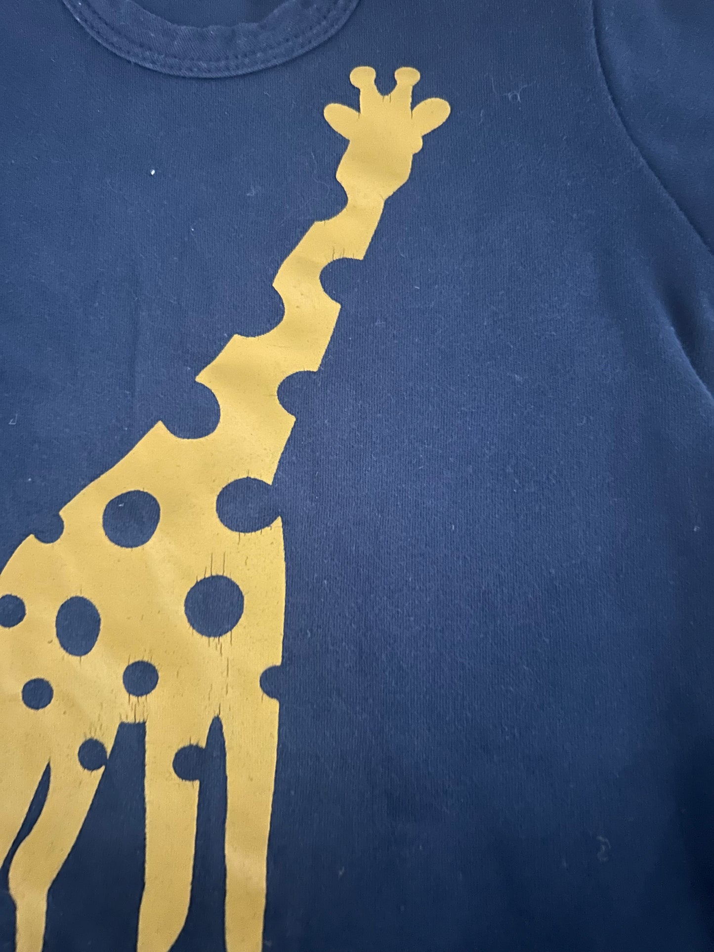 Marineblauwe onesie met giraffe - maat 60 (3M)
