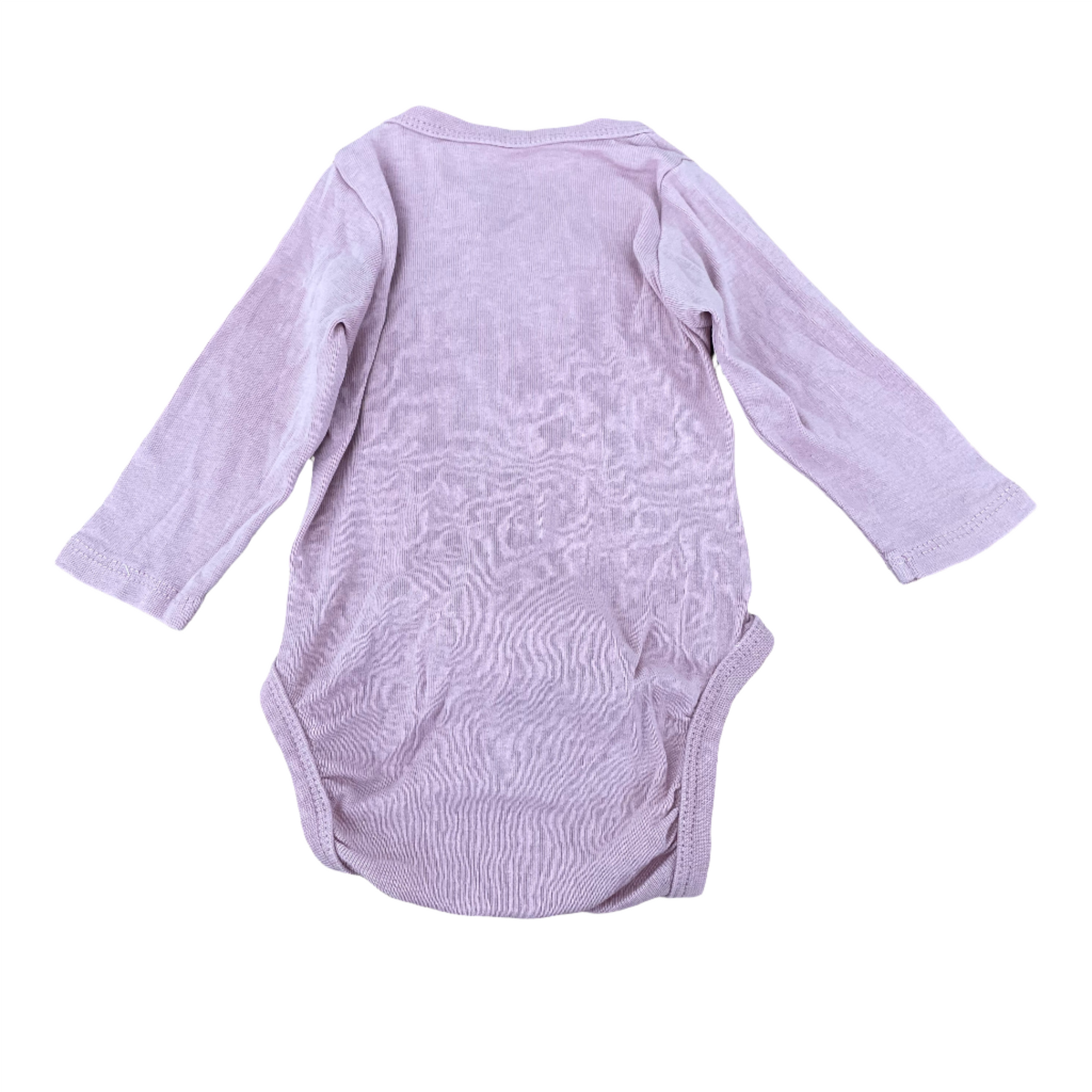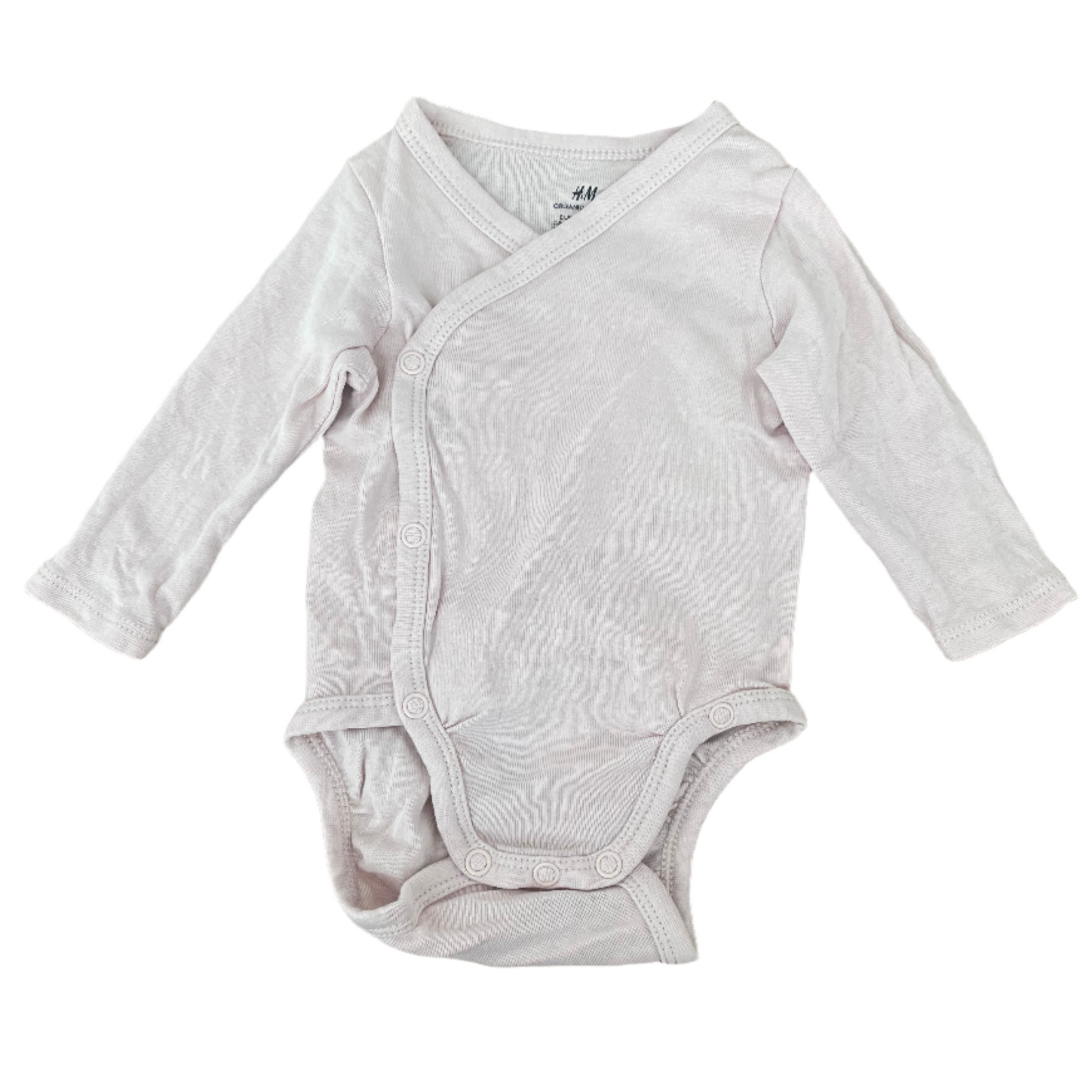 Set van twee wikkel rompers met lange mouwen. Lichtroze en vuilroze. De rompers hebben een wikkel aan de voorkant en een drukknoopsluiting aan de zijkanten en in het kruis. Maat 56 (1 - 2 maanden) 100% katoen van H&M