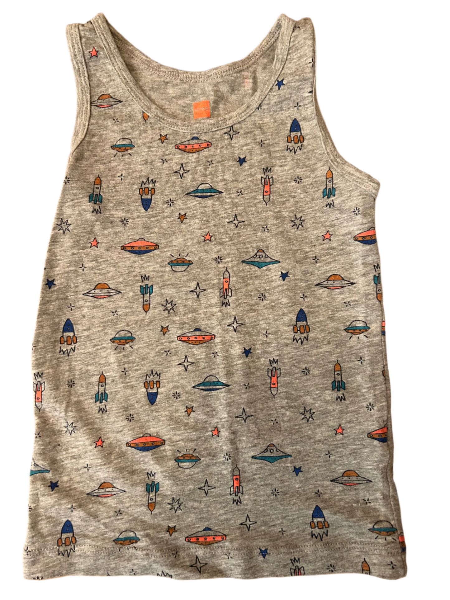 Grijs vest met korte mouwen en raketprint van Hema. Maat 98/104 (2-3 jaar).