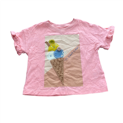 Roze t-shirt met korte mouwen en print van Ice Cream Funday. Maat 74 (6 - 9 maanden) 60% katoen 40% polyester van Next