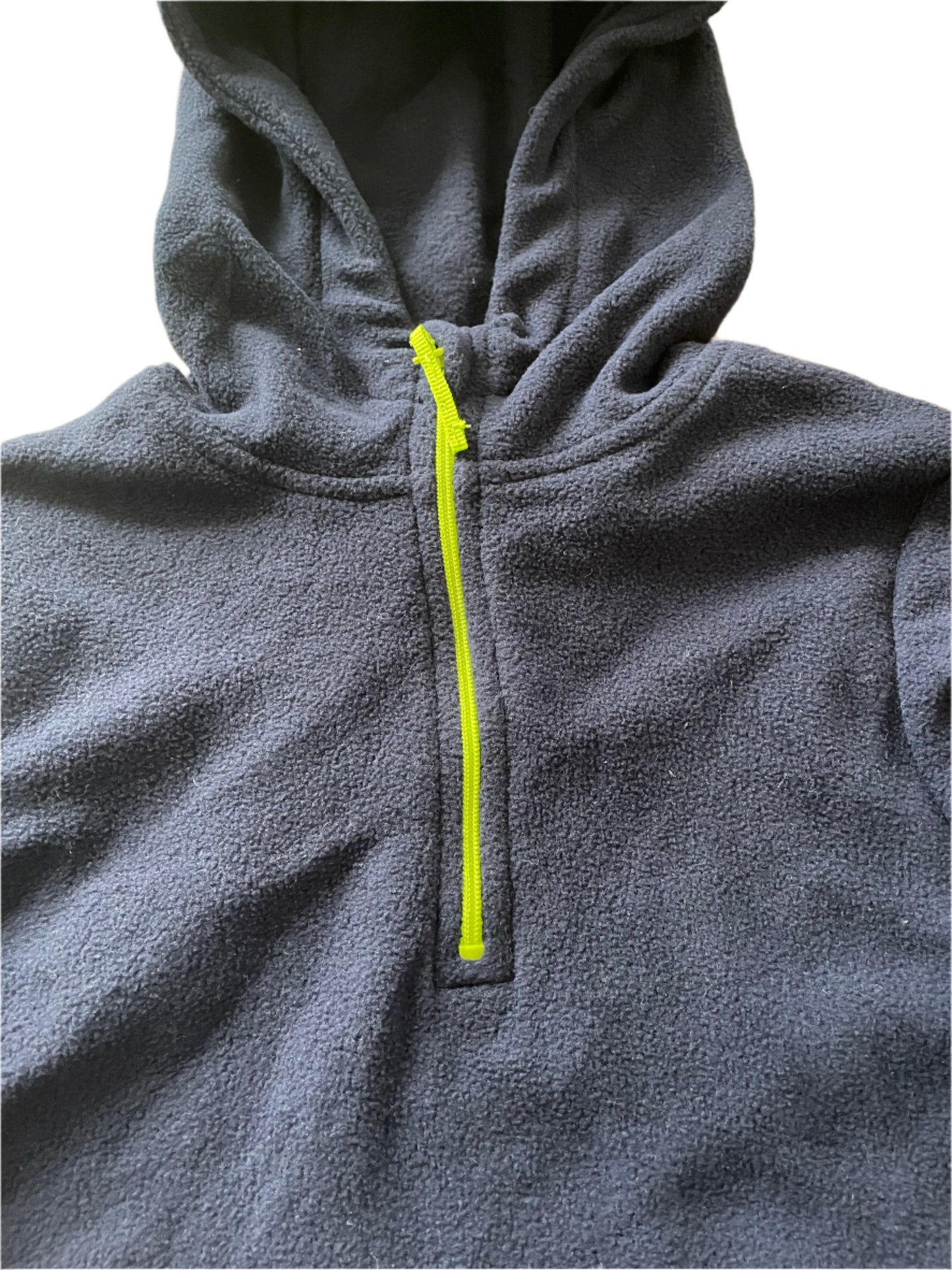 Warme marineblauwe trui met capuchon en groene rits. Maat 104, 3 tot 4 jaar van Mountain Warehouse 100% polyester