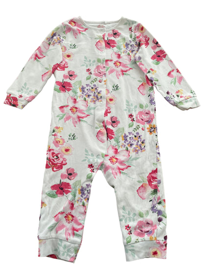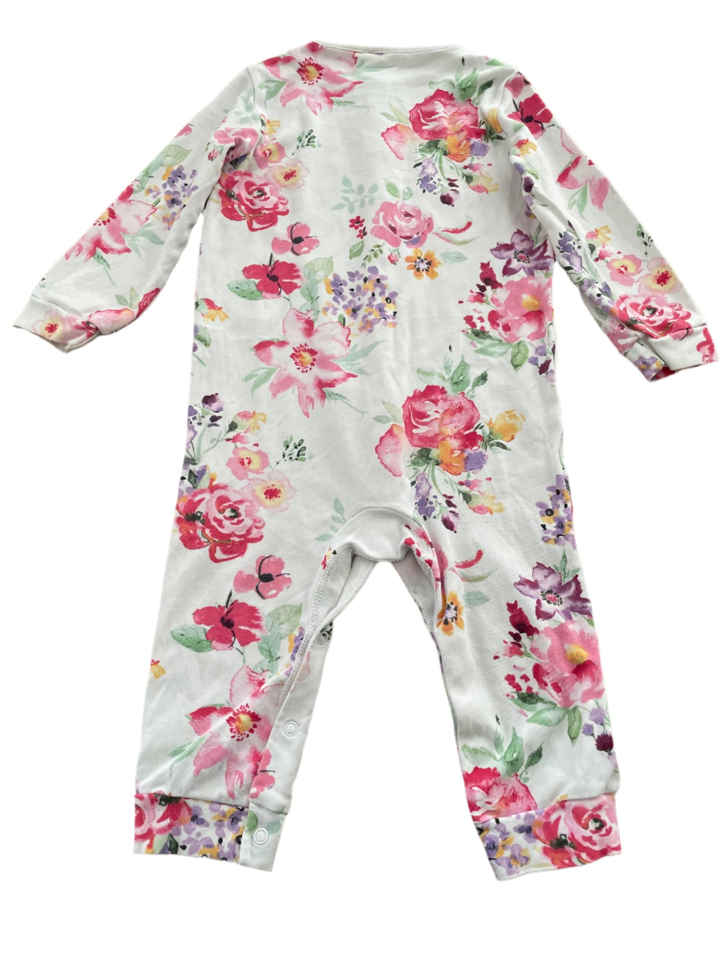 Twee rompertjes met lange mouwen en drukknopen aan de voorkant en de binnenkant van de pijpen voor gemakkelijk aan- en uitkleden en verschonen van de luier. Beide rompertjes hebben een bloemenmotief. Maat 92, 18 - 24 maanden 100% katoen van Next baby