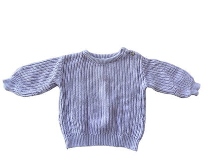 Purple long-sleeve jersey with two buttons on the right shoulder for easy dressing and undressing. The jersey has ribbed cuffs. Size 86, 12 to 18 months from Zeeman 100% Cotton