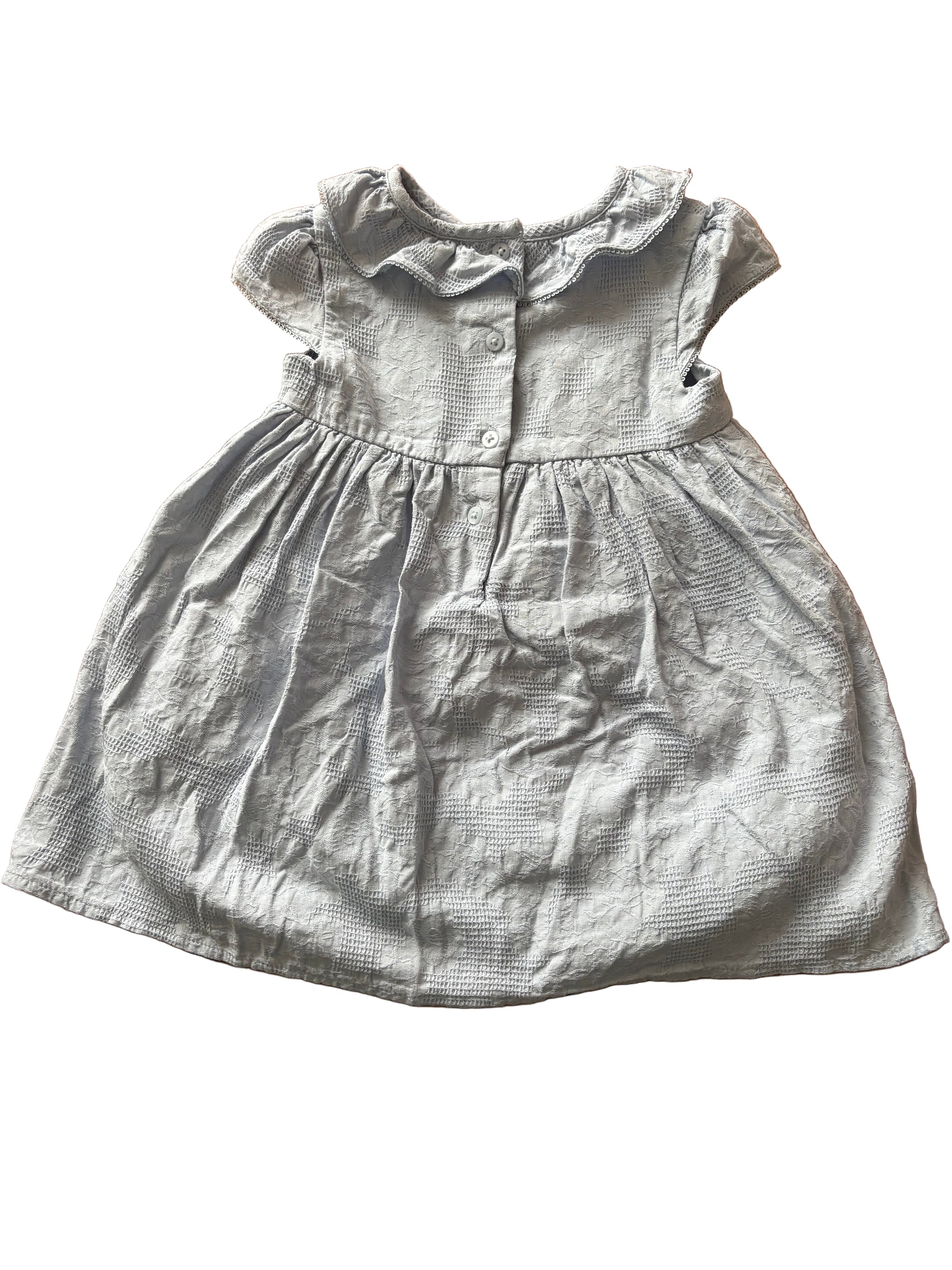 Light blue short-sleeve dress with a frill collar and buttons along the back for easy dressing and undressing. Size 86, 12 to 18 months from C&A 100% Cotton