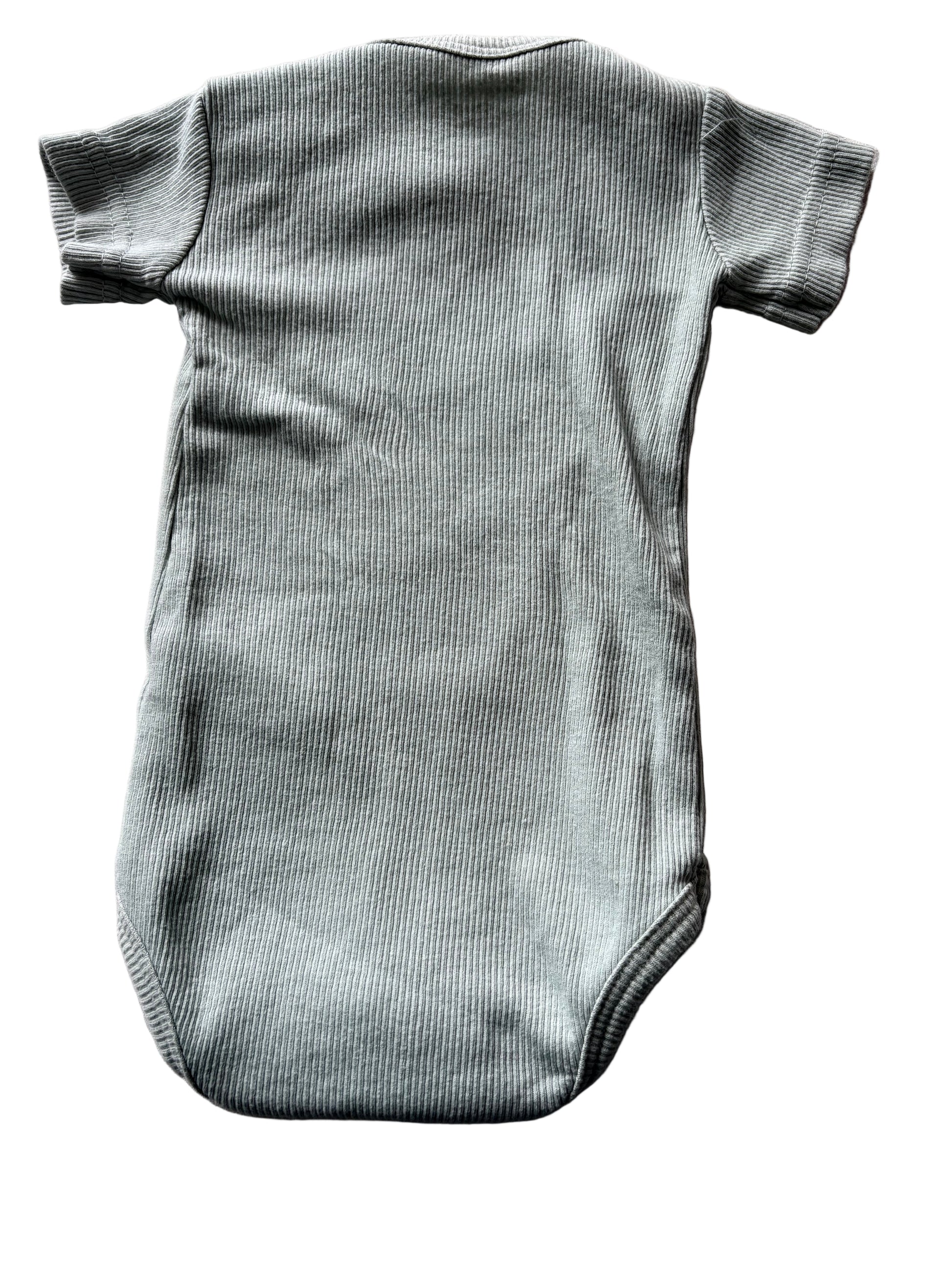 Short-sleeve ribbed light green romper with envelope neck. Size 62 to 68, 2 to 6 months from Zeeman 95% Cotton 5% Elastane