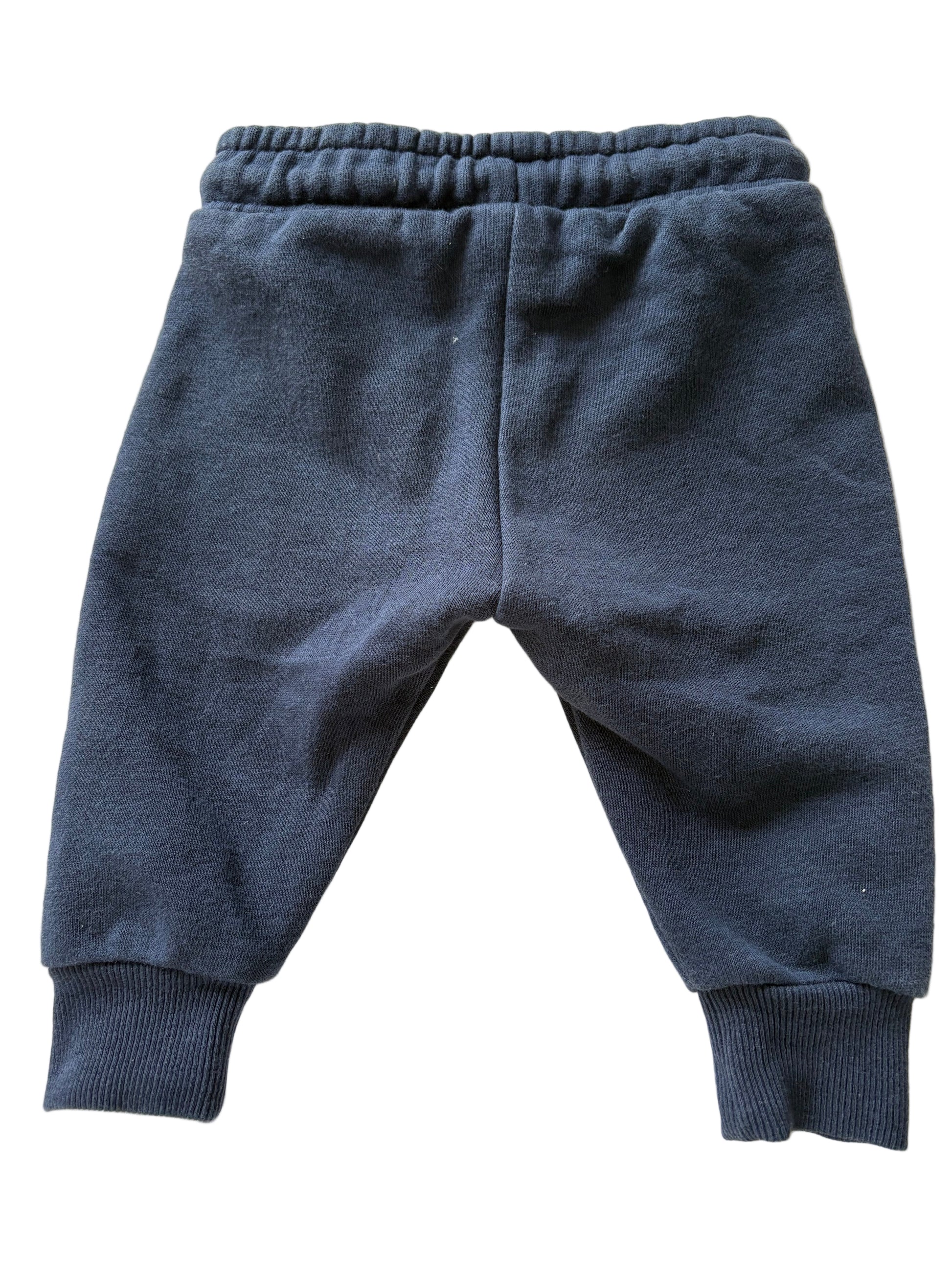 Navy joggers with 2 front pockets and an elasticated waist with a drawstring. Size 62, 2 to 4 months from HEMA 80% Cotton 20% Polyester