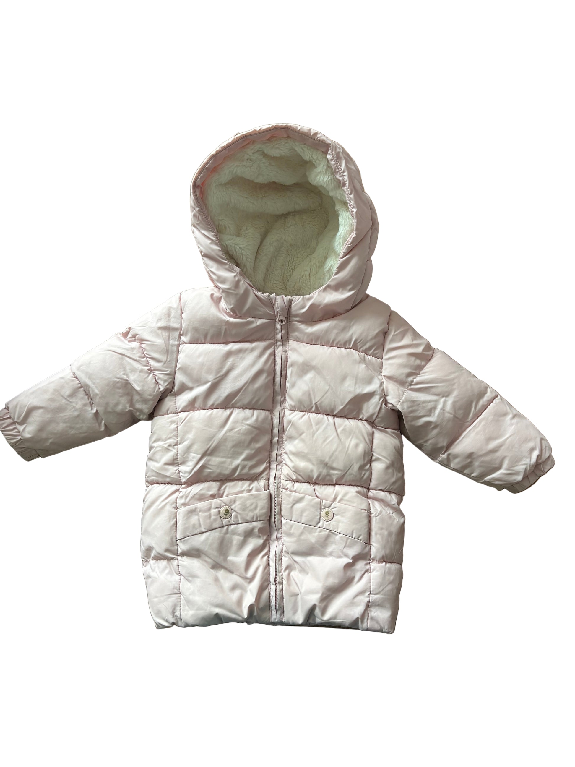 Pink winter jacket with hood and zipper. Size 86, 12 to 18 months from Mango 100% Polyester
